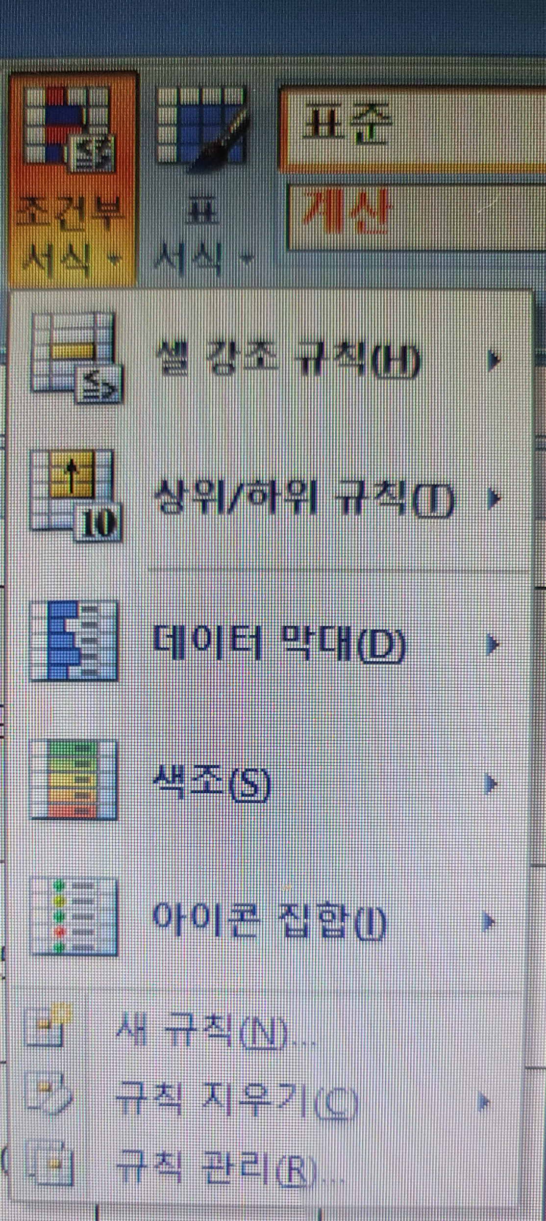 그리고 [홈] 탭에서 [조건부 서식] => [새 규칙] 순으로 클릭해서 들어갑니다.
